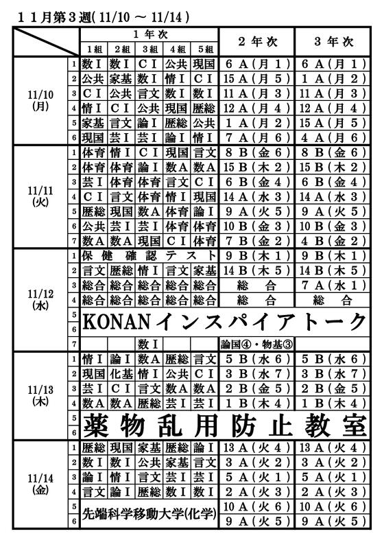 時間割11月10日~11月28日 9:00 探究活動ポスターセッションを実施しました。 11/12 令和7年度 KONANインスパイアトーク ~夢への第一歩~ を開催し... 11/12 {{item.Topic.display_title}} {{item.Topic.display_publish_start}} もっと見る