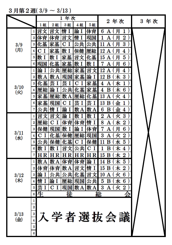 時間割3月9日~3月13日 16:03 令和8年3月行事予定 03/03 時間割3月2日~3月6日 03/03 北海道釧路江南高等学校 ------------------------------------... 03/03 {{item.Topic.display_title}} {{item.Topic.display_publish_start}} もっと見る