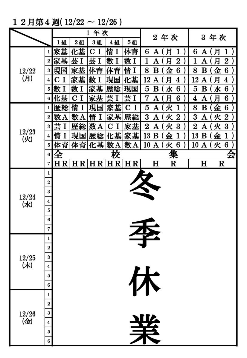 時間割12月22日~12月26日 10:54 時間割12月15日~12月19日 12/08 {{item.Topic.display_title}} {{item.Topic.display_publish_start}} もっと見る