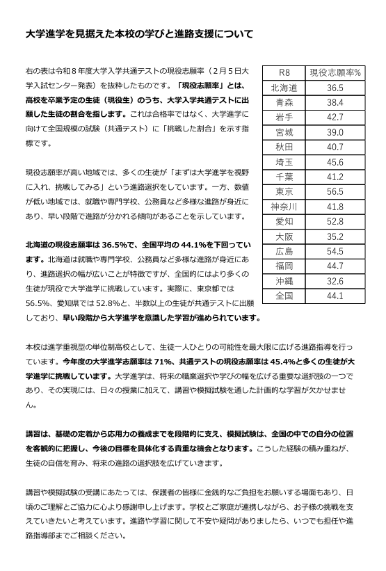 進路室だより(2月18日発行) 8:44 令和8年2月行事予定 02/17 令和7年度 後期中間 追考査時間割 02/16 {{item.Topic.display_title}} {{item.Topic.display_publish_start}} もっと見る