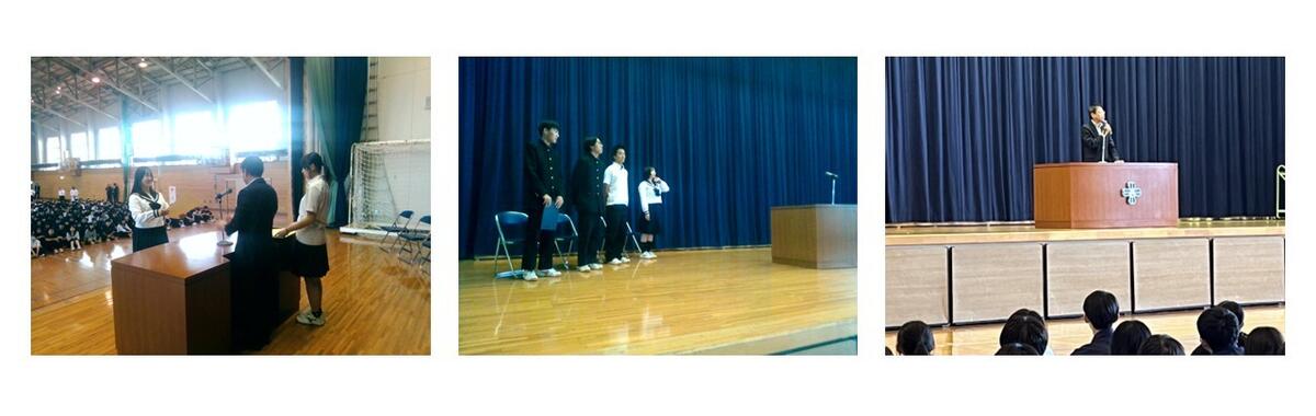 9月26日、賞状伝達式及び生徒会長選挙立会演説会を実施した後、令和7年度前期終了式を行いました。