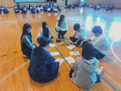 集団の中で豊かな人間関係を作り、温かなコミュニケーションがスムーズに行われるようにすること。また、この活動を通して人間関係につまずきを持つ生徒が少なくなること。更にピアサポート活動を通し、温かい学校や学級づくり・人間関係づくりを目指し、問題が生じる前の予防開発的な役割を担うことを目的とした第2回ピアサポート学習を1、2年次を対象に実施しました。