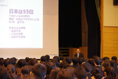 塩谷氏からは、講演テーマを「元気アップで進路実現~心のサプリメント~」としてモチベーションを高める方法やこれからの時代の生き方・働き方について、具体的なエピソードをやユーモアを交えながらお話しいただきました。生徒たちは真剣に耳を傾け、自らの進路や将来を考える貴重な時間となりました。
