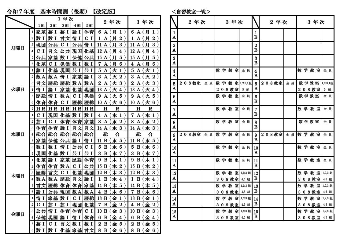 令和7年度 後期基本時間割