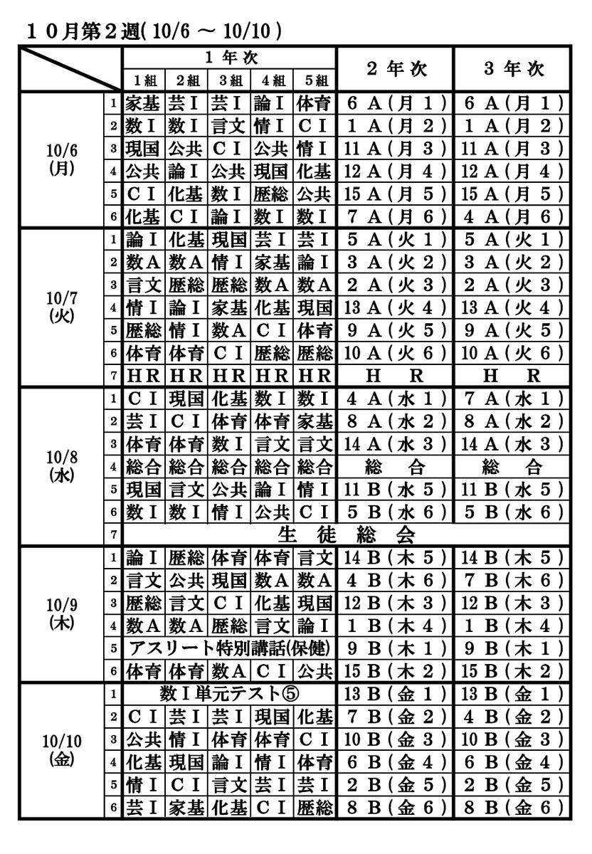 時間割10月6日~17日