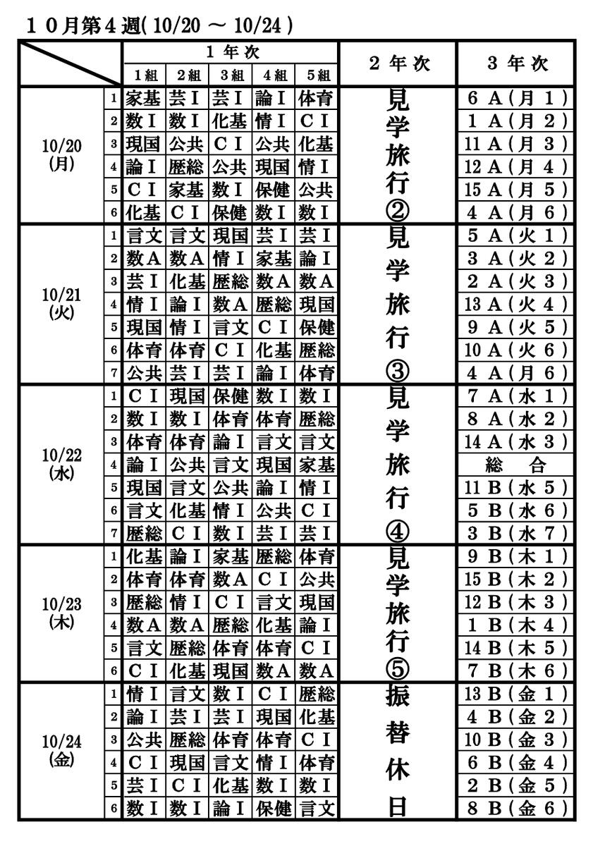 時間割 10月20日~10月24日