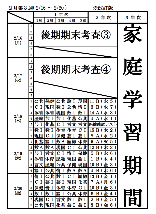 時間割月間行事予定自然災害等発生時の対応生徒指導 交通事故・不審者の対応生徒心得進路指導 進路室だより保健相談 保健相談だより心と体のチェックリスト相談申し込みフォーム感染症にかかったら